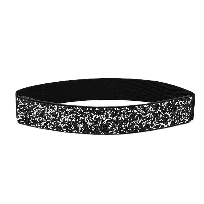 This glamorous women's belt makes a statement. Made of black leather with silver glitter sequins decorating the whole piece, it sparkles and shimmers with every step. it fits comfortably around the waist, accentuating your figure. The silver-toned buckle features a subtle square shape and adds just the right amount of shine. This versatile belt lifts any look, from cocktail dresses to evening gowns. Wear it to your next party, wedding or special event and dazzle the dance floor in style. Hand wash recommended to keep the sequins sparkling as new.
