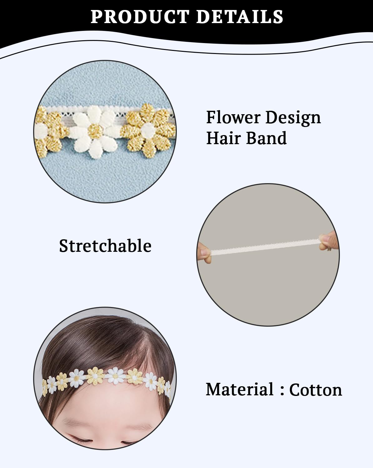 This adorable headband is the perfect accessory for your little princess aged 0-3 years. Crafted with delicate flowers and shimmering accents, it adds a touch of whimsy and charm to any outfit. The soft, stretchy material ensures a comfortable and secure fit, allowing your baby to move and play without any discomfort. Whether you're dressing up for a special occasion or simply want to add a pop of color and style to your little one's everyday look, this headband is a must-have. Lightweight and easy to wear, it's a practical yet fashionable choice for the modern mum. Elevate your baby's wardrobe with this charming headband and let her radiate cuteness wherever she goes.