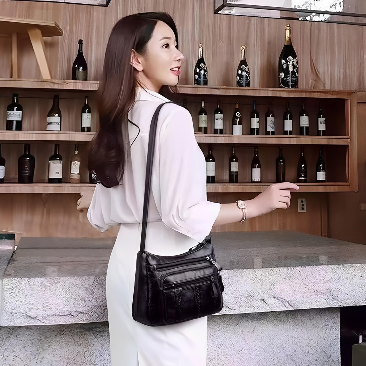 This stylish crossbody bag is the perfect accessory for women on-the-go. Crafted from premium PU leather, it boasts a sleek and sophisticated design. The bag features multiple compartments and zipped pockets, ensuring ample space for your essentials while keeping them organised and secure. The adjustable shoulder strap offers a comfortable and versatile carrying option. With its compact size and lightweight construction, this crossbody bag is an ideal companion for daily commutes, shopping trips, or travel adventures. Elevate your everyday look with this fashionable and functional bag.