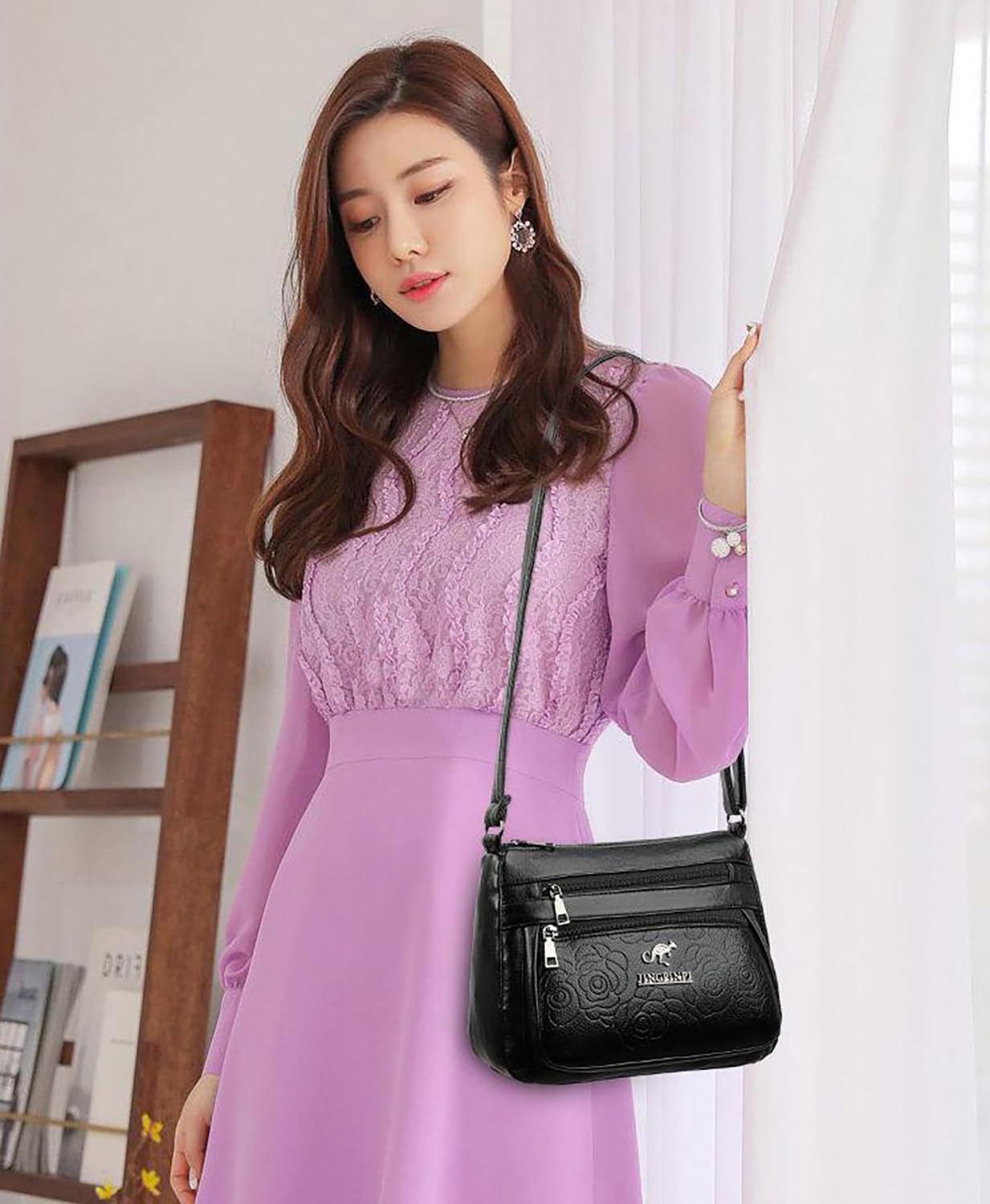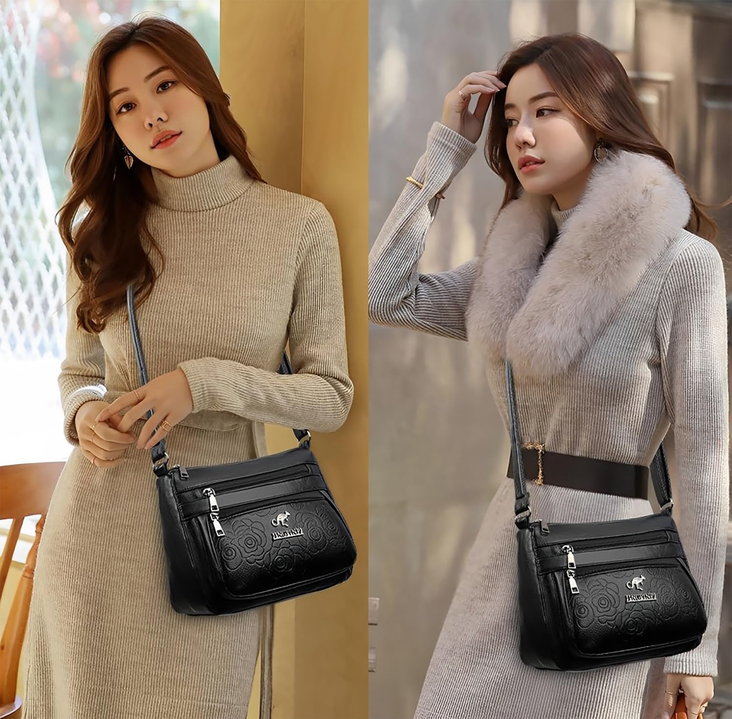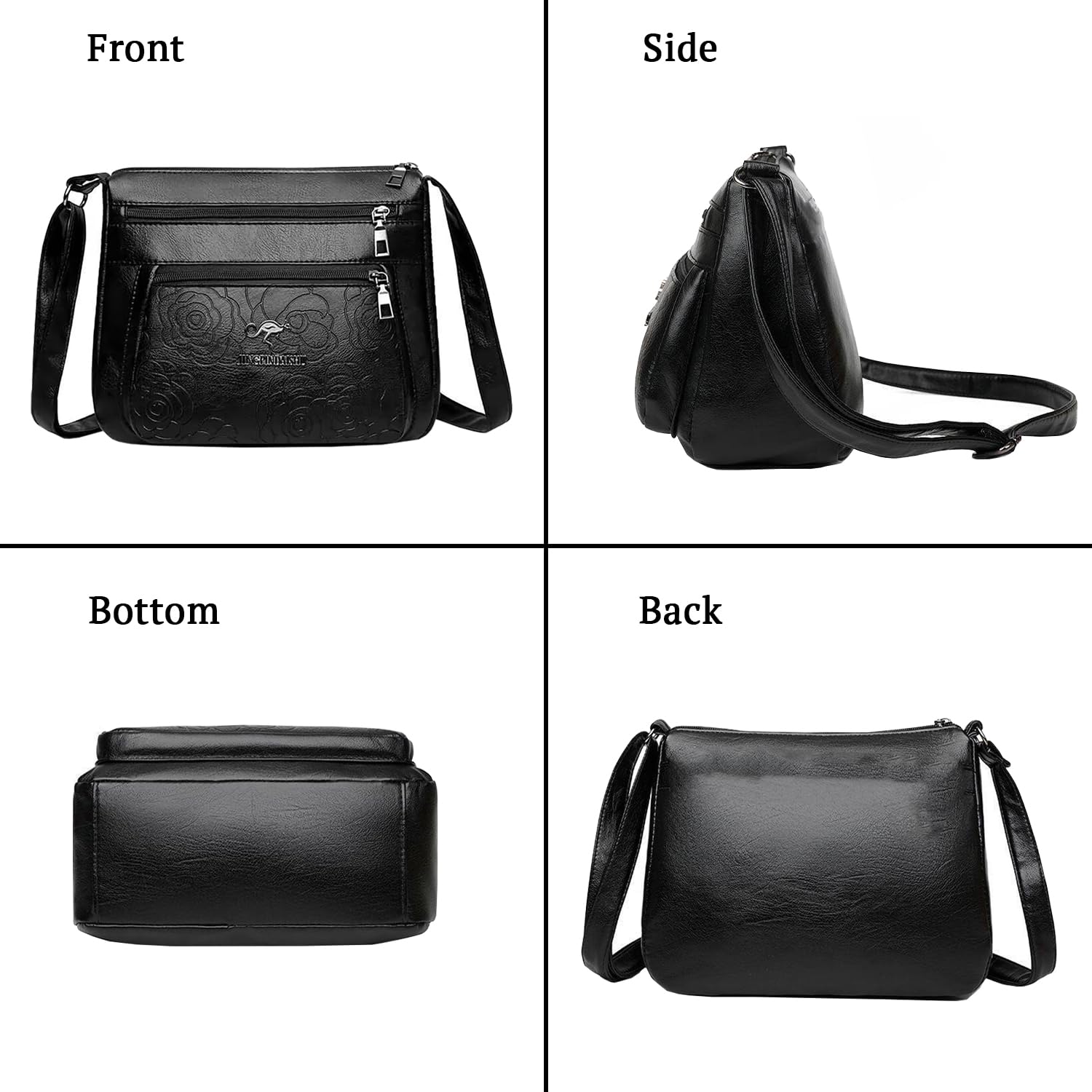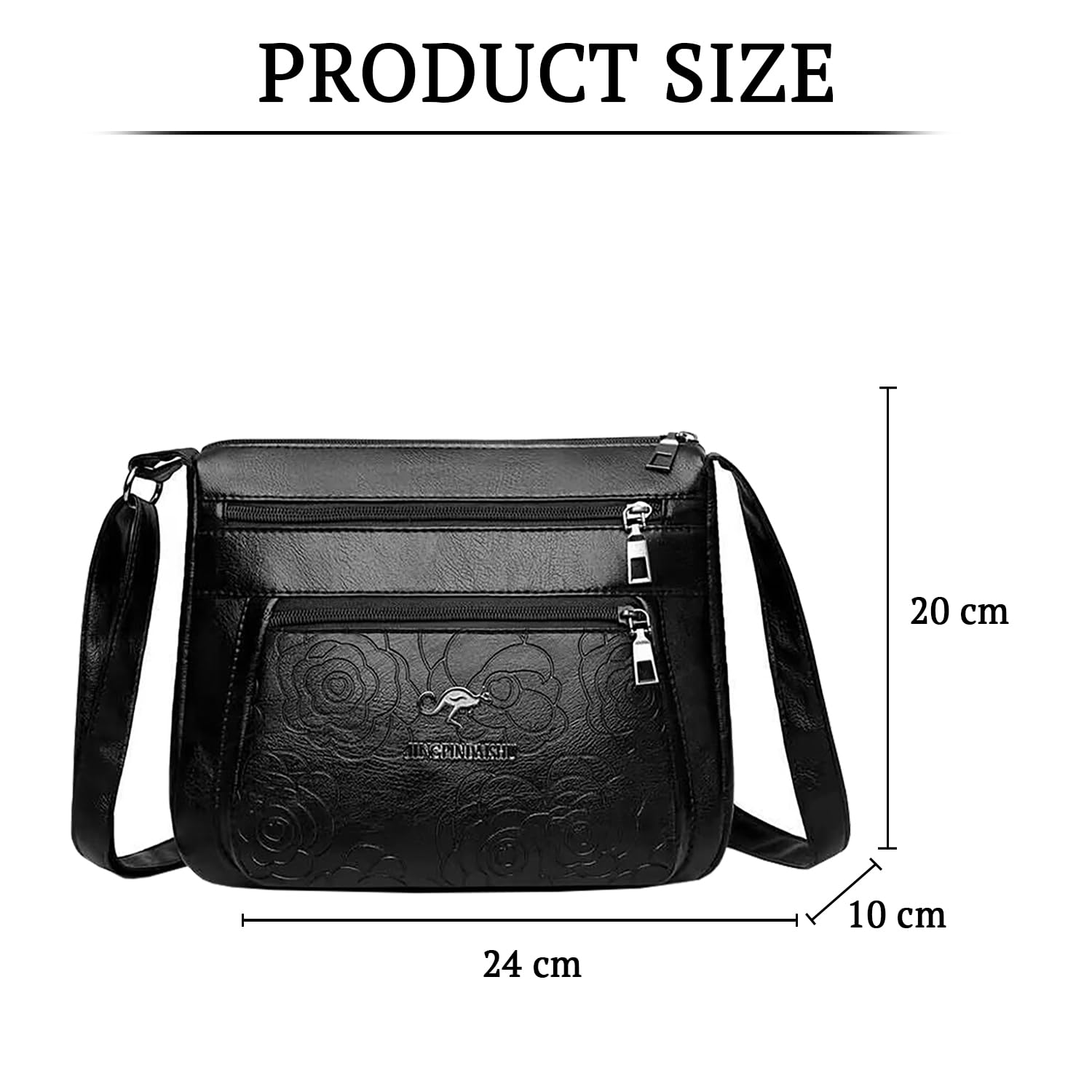 This stylish leather shoulder messenger bag for women exudes sophistication and practicality. Crafted from premium leather, it boasts an intricate embossed floral design that adds a touch of elegance. The bag features multiple zippered compartments and pockets, allowing you to organise your essentials with ease. The adjustable shoulder strap ensures a comfortable carrying experience. With its spacious interior and secure closures, this bag is perfect for everyday use or travel. Indulge in its luxurious look and feel while enjoying the convenience it offers.
