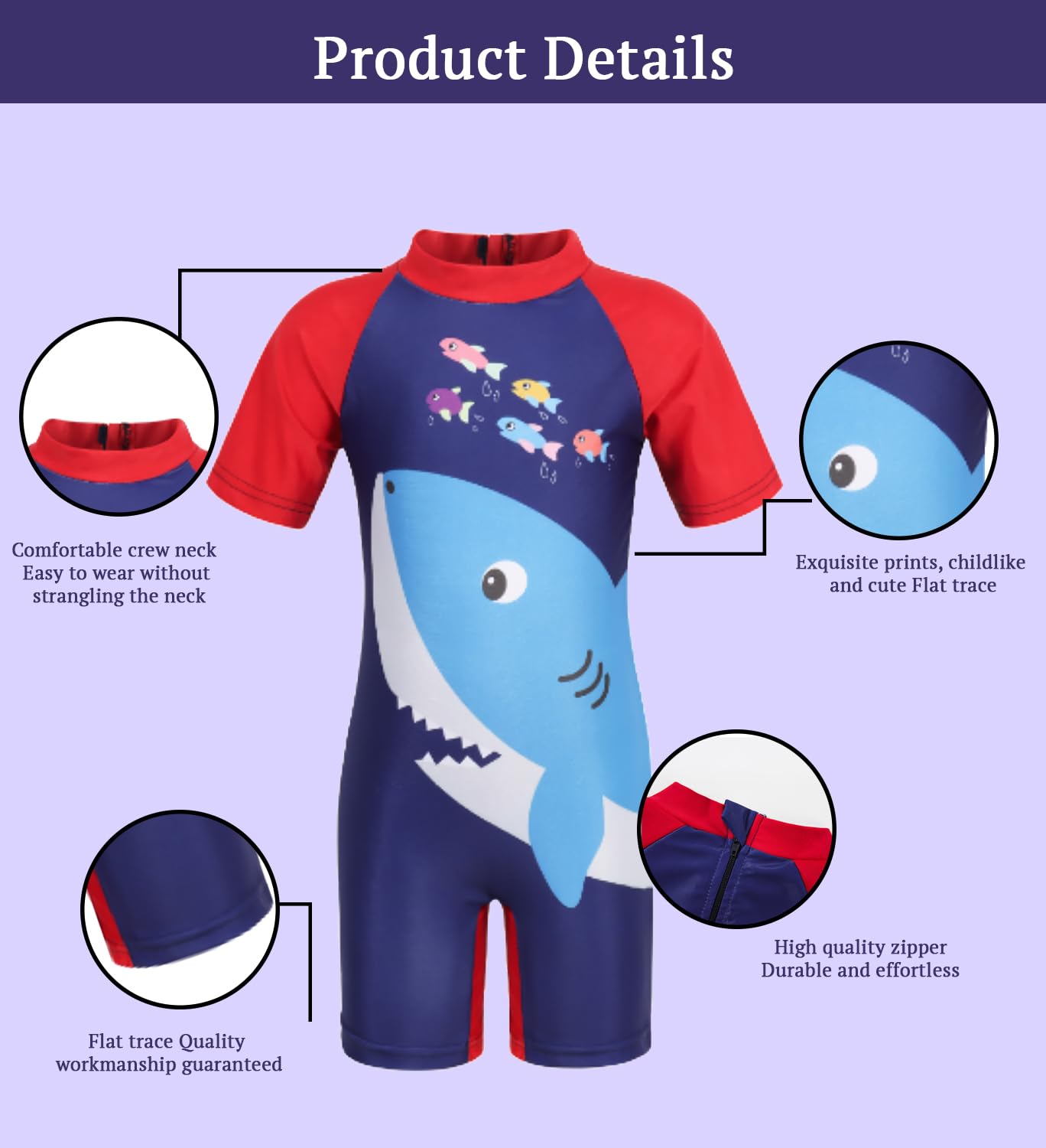 This cute and colorful one-piece swimsuit rashguard is perfect for your little one's beach or pool day fun. Available in red shark or pink unicorn designs, it offers UV protection with its snug-fitting, soft fabric. The short sleeves provide coverage while allowing freedom of movement. Sizes range from medium for ages 3-4 up to extra large for ages 7-8. With its adorable graphics of sharks or unicorns, your child will love showing off their swimsuit. The quick-drying material helps keep them comfortable in and out of the water. Its one-piece design makes for easy on and off, and the built-in elastic waist ensures a great fit whether splashing around or playing in the sand. Keep safe sun exposure at bay and let the water adventures begin