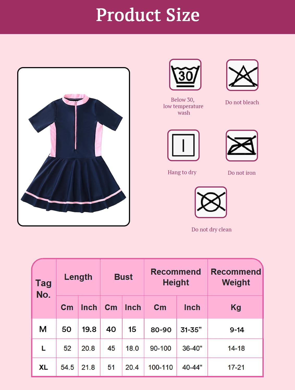 size: M (3-4 years old), L (5-6 years old), XL (7-8 years old)