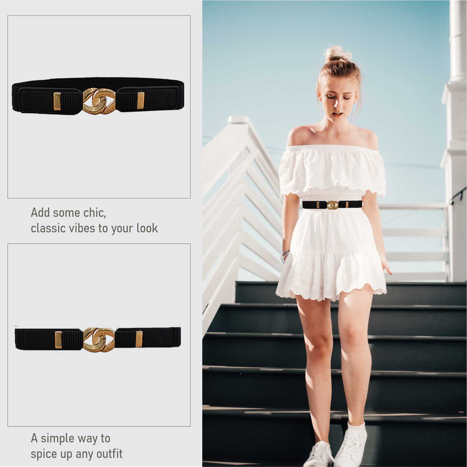 The vintage design stretch dress belt will provide a chic presence to your look in seconds, accessorize and upgrade your look, cinch your waist for an hourglass figure, create a better body proportion. This ladies elastic waist belt makes with well-made metal buckle, good quality faux leather and high elasticity fabric that brings more comfortable and convenient wearing experiences.