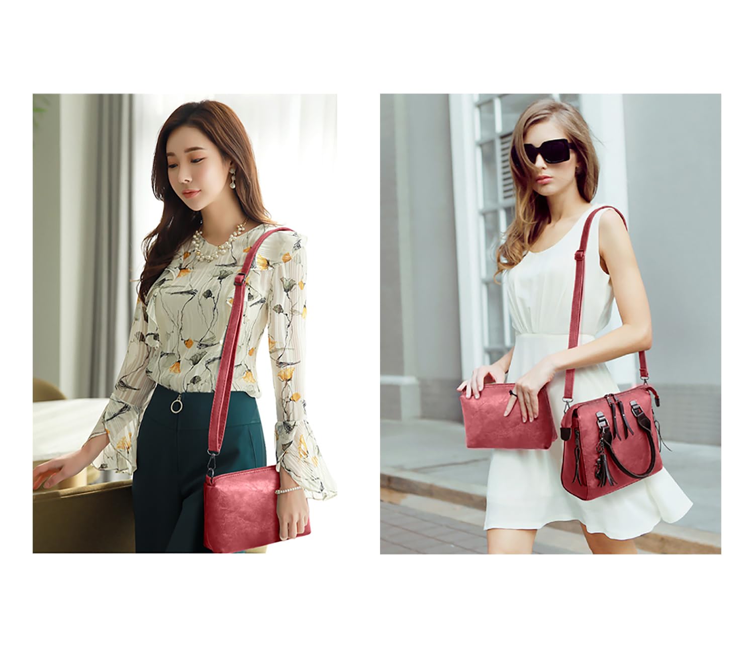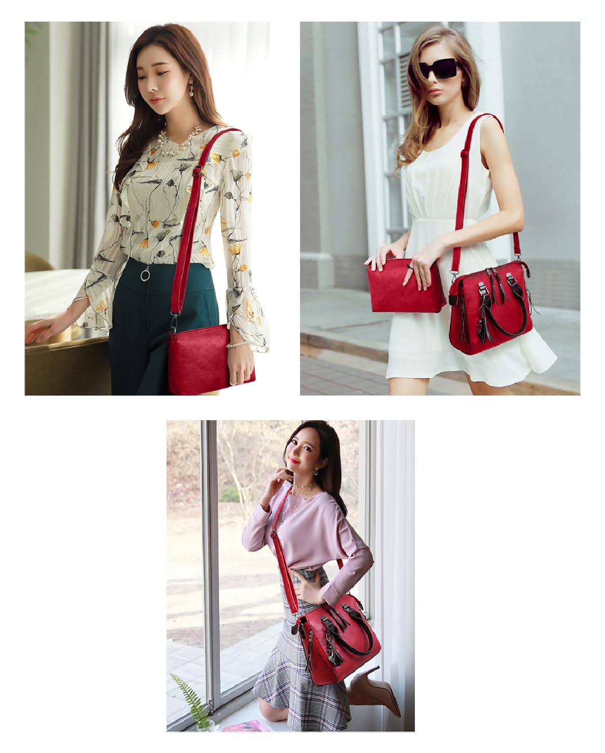 This stylish and functional 4-piece bag combo is perfect for the modern woman on the go. The set includes a tote bag, a shoulder bag, a crossbody bag, and a cute cat keychain. All of the bags are made of high-quality PU leather and have multiple compartments to help you keep your belongings organized. The classic design of the bags makes them suitable for a variety of styles, and the included keychain adds a touch of whimsy to the set.