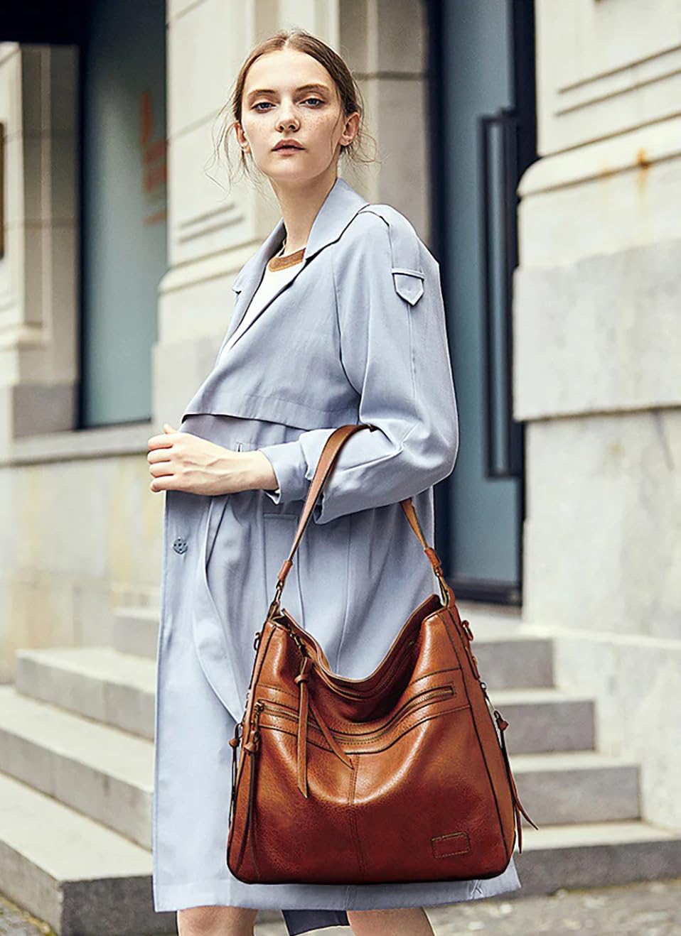 Elaborate on features: Mention the high-quality PU leather material, two bags in one set for maximum versatility, spacious handbag for everyday essentials, functional crossbody bag for evenings out or hands-free convenience, and removable strap on the crossbody bag.