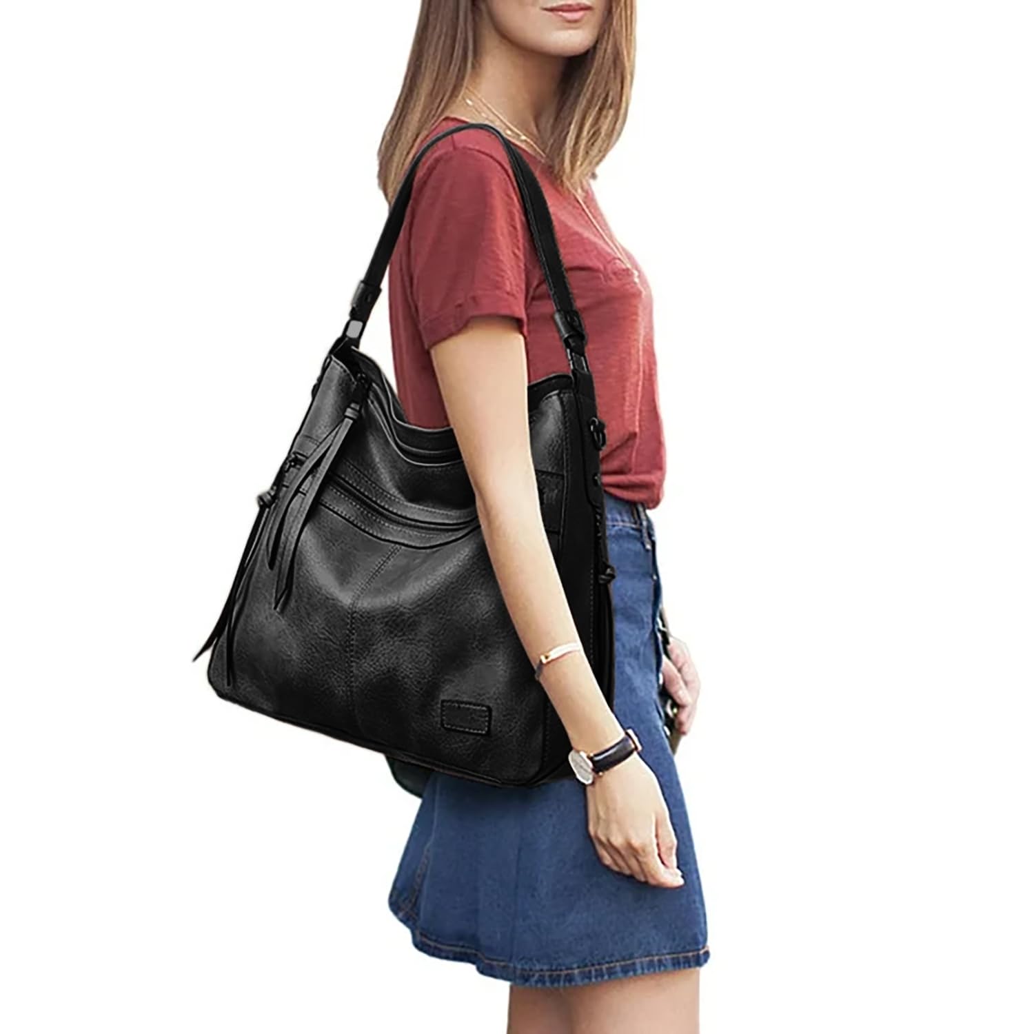 Highlight benefits: Emphasize how this combo offers two bags for the price of one, providing options for different occasions and needs. The spacious handbag is perfect for everyday errands, while the crossbody bag is ideal for nights out or when you need hands-free convenience. The removable strap on the crossbody bag allows you to convert it to a clutch.