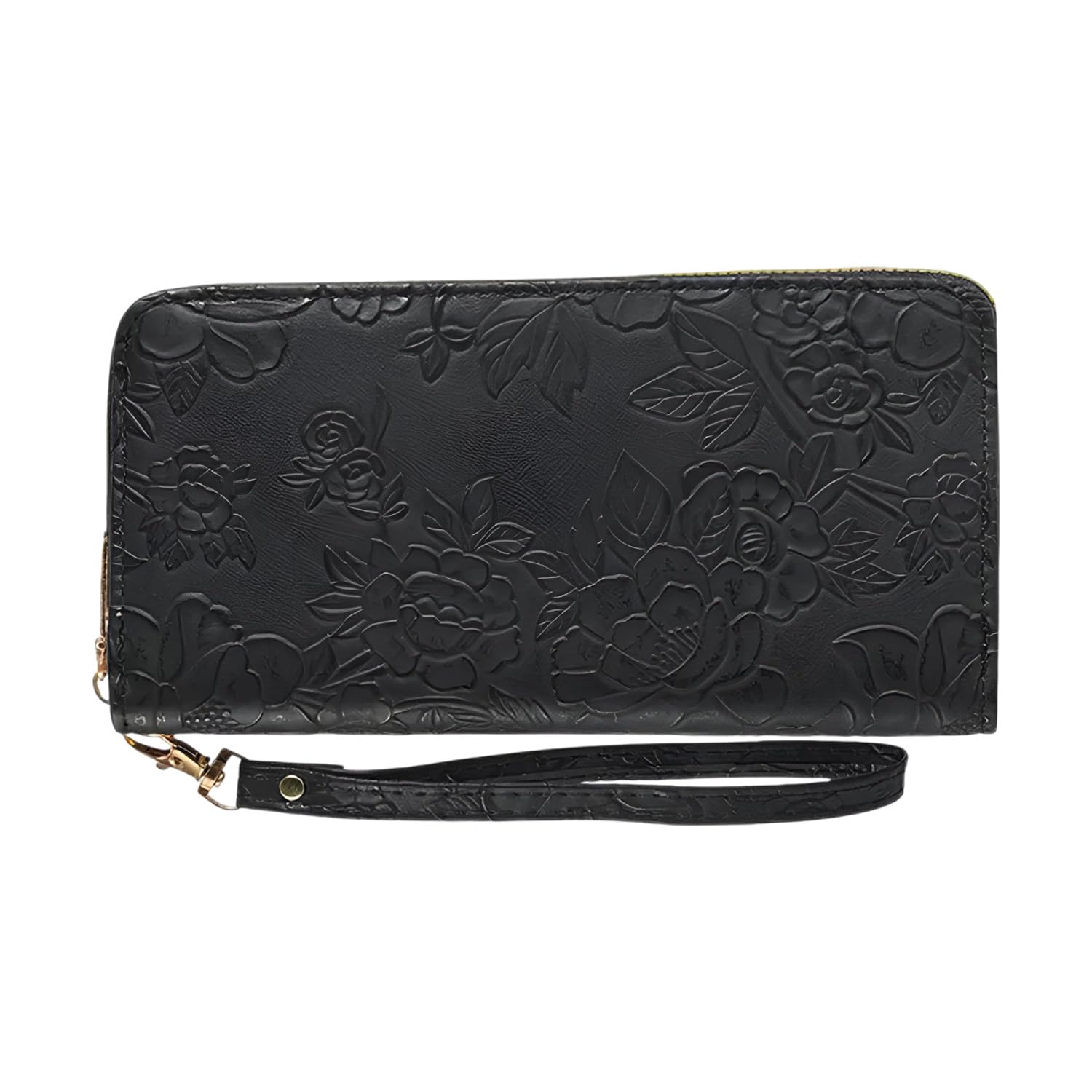 This elegant zip-around wallet offers a spacious and well-organized interior, designed for both style and functionality. It features multiple compartments, including a dedicated coin pocket for easy access to loose change. The accordion-style design ensures ample storage for cash, cards, and essentials while keeping everything neatly arranged. The exterior showcases a beautiful floral pattern with a one zipper closure for added security and convenience. Crafted from high-quality PU leather, this wallet combines durability with a sophisticated look, making it perfect for everyday use or special occasions.