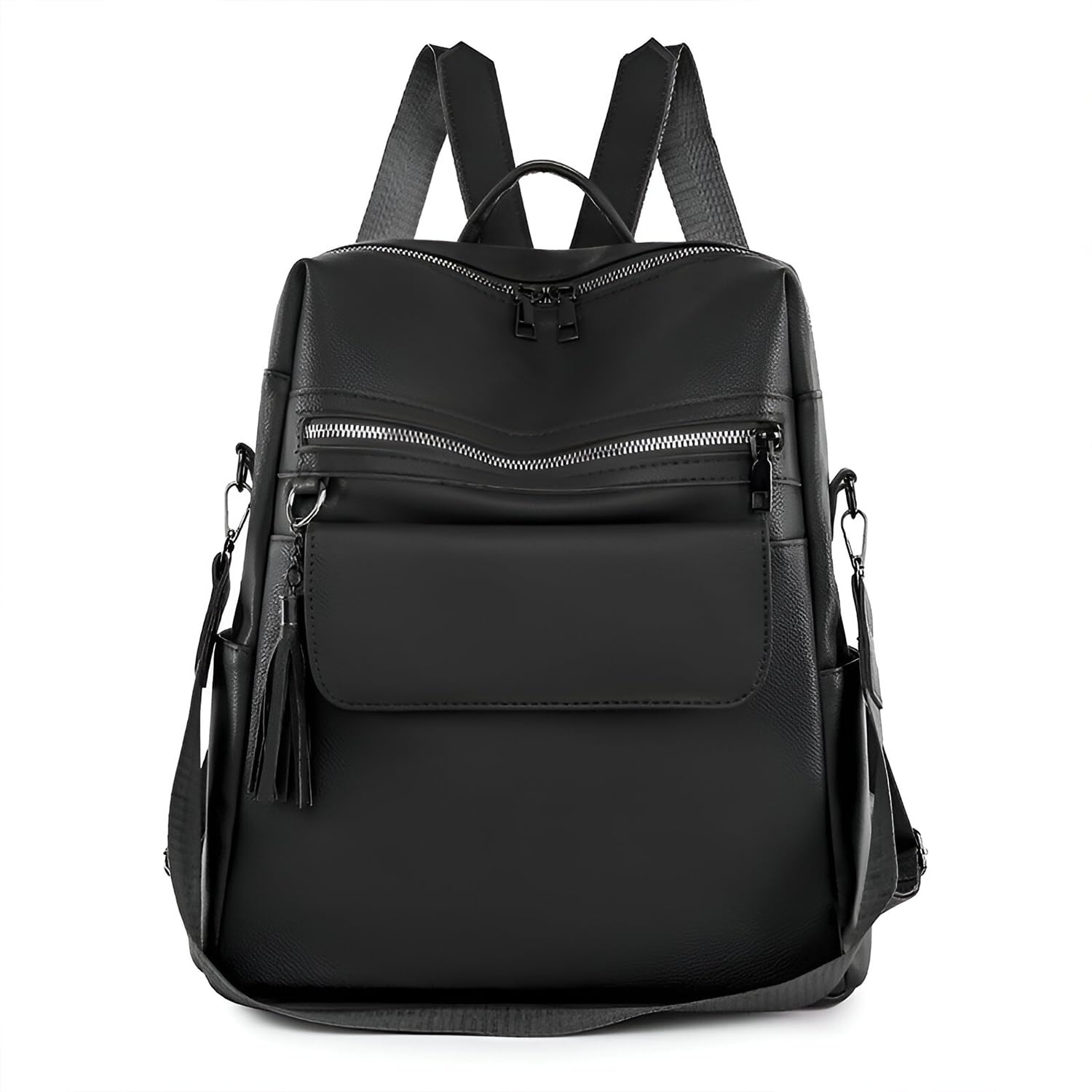 This elegant leather backpack is crafted from high-quality PU leather, offering a stylish and durable design perfect for daily use. It features a spacious main compartment with a secure zipper closure, along with a convenient back-side zipper pocket — ideal for carrying essentials like tablets, notebooks, and cosmetics. The front zip pocket, detailed with a chic tassel, and an additional flap pocket provide easy access and extra storage for smaller items. Designed for versatility, the backpack comes with adjustable shoulder straps and a detachable side strap, allowing it to be worn comfortably as a backpack. Its minimalist and modern design makes it suitable for the office, travel, or casual outings. A perfect blend of fashion and function, the backpack also includes an extra detachable strap for added convenience.