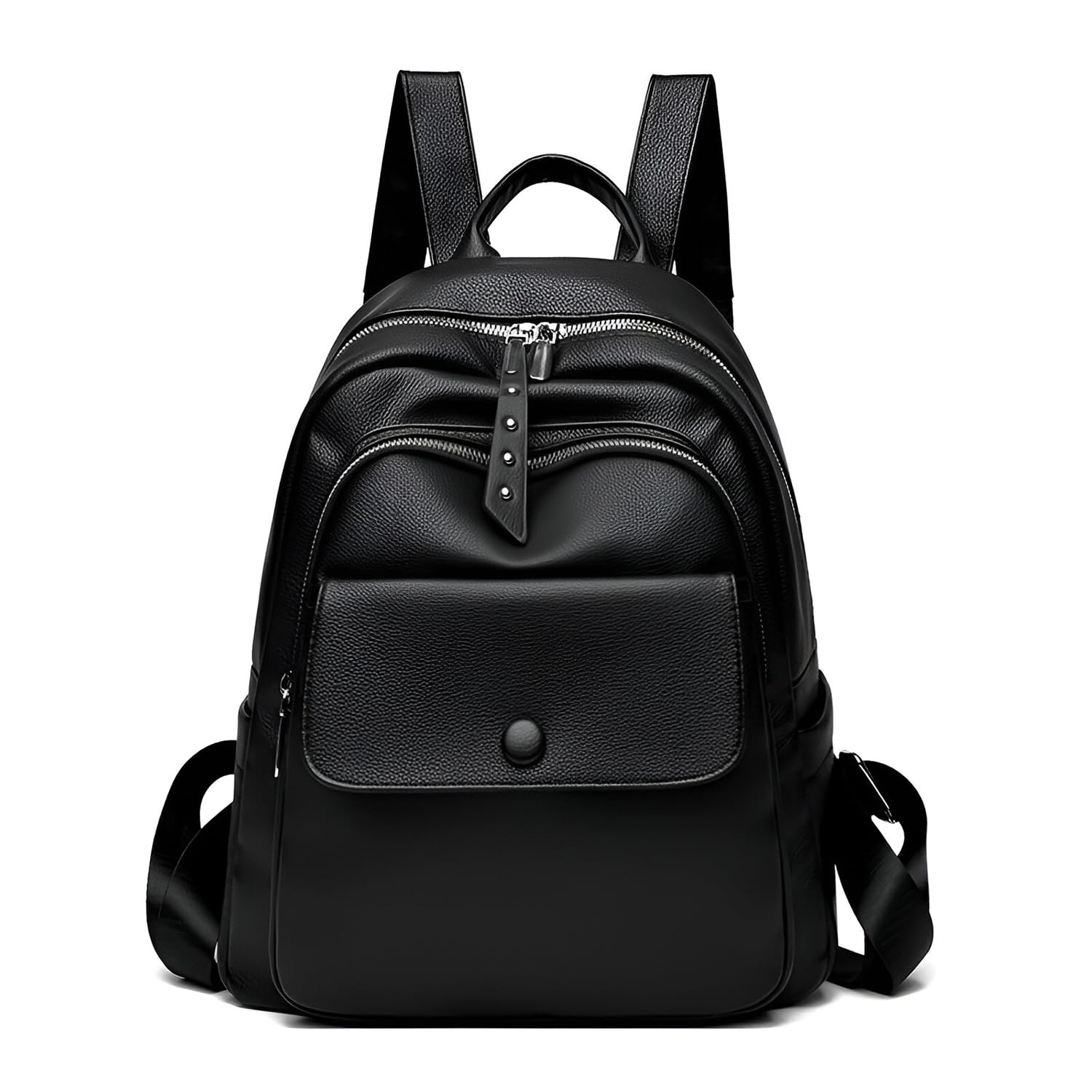 This elegant backpack is crafted from high-quality faux leather with a smooth, textured finish that offers durability and a sleek modern look. The spacious main compartment, along with multiple inner pockets, helps keep your essentials neatly organized. A stylish front flap pocket adds both convenience and charm to the design. Perfect for work, school, travel, or casual outings, blending style with functionality. It’s also a thoughtful gift choice for birthdays, holidays, and special occasions. Easy to care for — just wipe clean with a damp cloth, and avoid prolonged sun or moisture exposure.