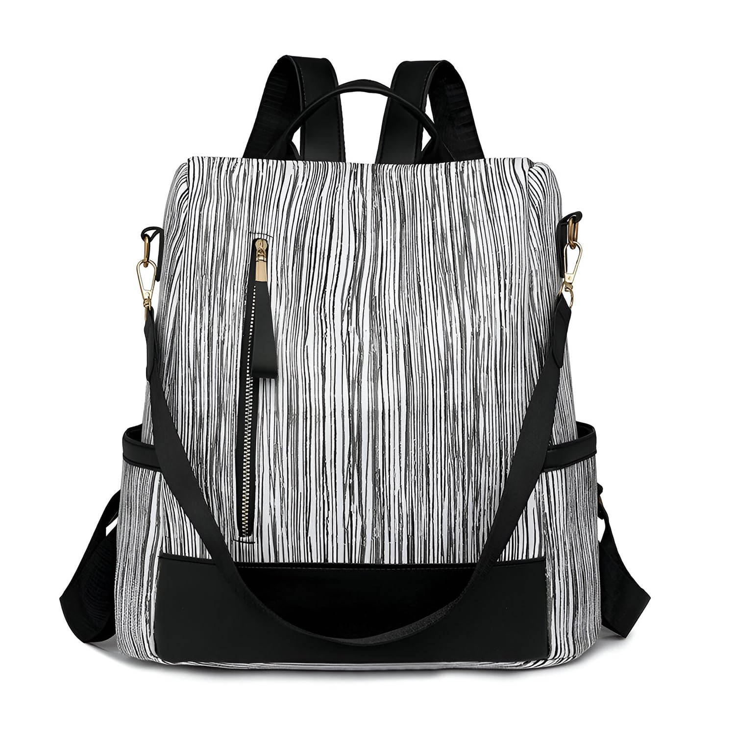 This stylish backpack is crafted from high-quality PU leather, featuring a sleek vertical line pattern for a modern and elegant look. Its spacious main compartment, multiple zippered pockets, side slip pockets, and a hidden back pocket ensure easy and secure organization of daily essentials. The design balances fashion and functionality, making it perfect for work, travel, or casual outings. Adjustable shoulder straps and a soft handle offer comfortable carrying all day long. Durable, practical, and chic — it’s a great gift for anyone who values both style and convenience. To maintain its shine, wipe clean with a soft damp cloth and store away from direct sunlight.
