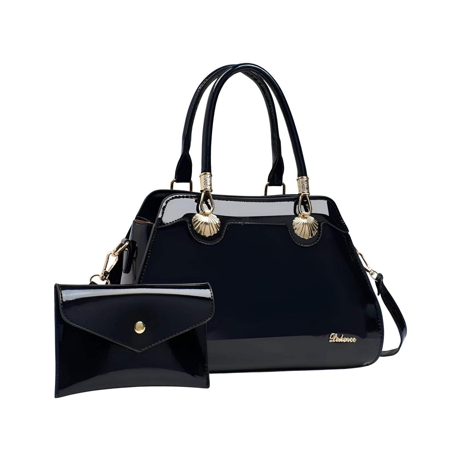 SYGA PACK OF 2 Handbag With Clutch Make a bold fashion statement with this stunning mother-and-child handbag set in rich purple. The main bag features elegant gold-tone shell embellishments, precise stitching, and a sophisticated silhouette measuring 29 cm in length, 13 cm in width, and 21 cm in height. Crafted from durable PU leather with a glossy finish, this versatile bag includes a matching mini purse companion. The medium-soft structure maintains its shape while allowing flexibility, and the cotton lining ensures your belongings stay protected. The single shoulder strap offers comfortable carrying options, while the zipper closure keeps your items secure. Perfect for daily use, this spacious bag combines practical design with contemporary style. The set's sleek aesthetic and ample storage make it an ideal choice for fashion-conscious individuals who appreciate both form and function. Also available in gold, brown, black, pink, khaki, red, and green colours.