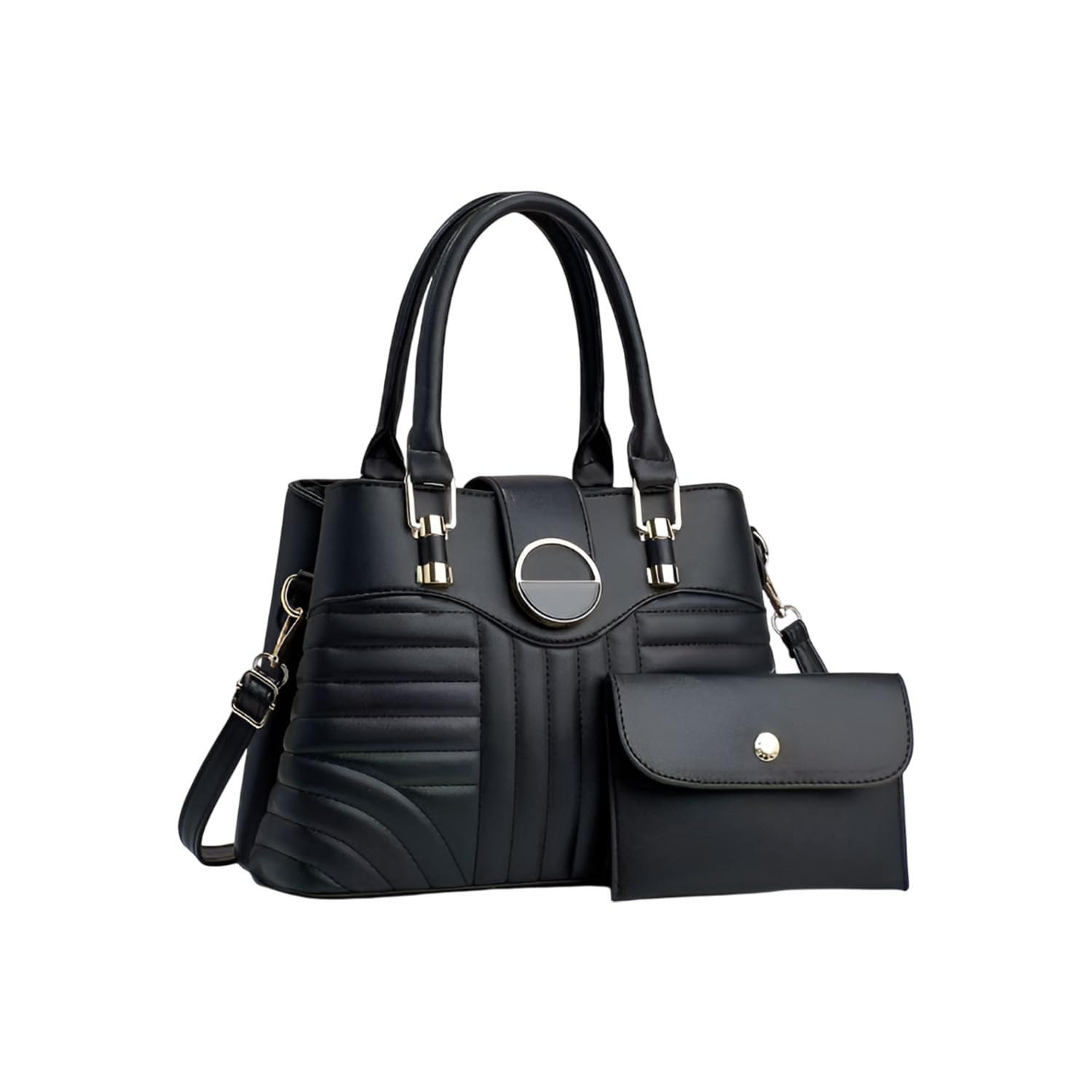 Refined and ready for every occasion, the SYGA Pack of 2 Handbag and Clutch Set is a perfect addition to any wardrobe. Made from high-quality material with elegant sewing thread accents and a chic circular buckle, this stylish tote pairs fashion with functionality. With spacious compartments and a matching clutch, it’s ideal for everyday use – from workdays to weekends. Elevate your outfit effortlessly with this must-have duo.