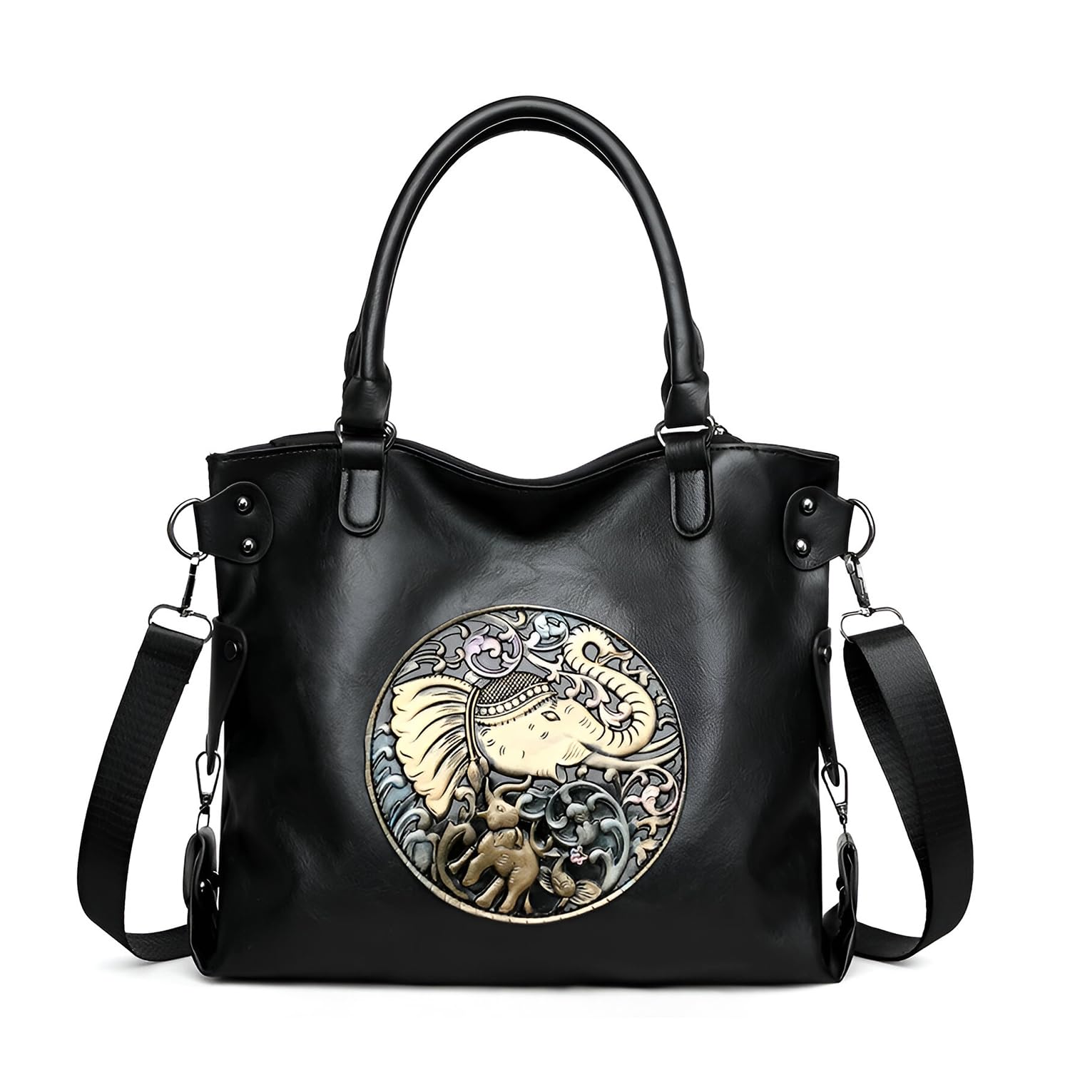 Elevate your everyday style with this elegant PU leather tote bag, featuring a beautifully embossed elephant design. The spacious horizontal square shape offers ample room for all your daily essentials. With a zippered main compartment and internal patch pocket, your belongings stay secure and organized. The single adjustable strap provides comfort and versatility for shoulder or crossbody wear. Designed with European and American retro flair, it's perfect for daily outings or casual events. Durable, soft, and easy to maintain—this bag makes a thoughtful and unique gift.