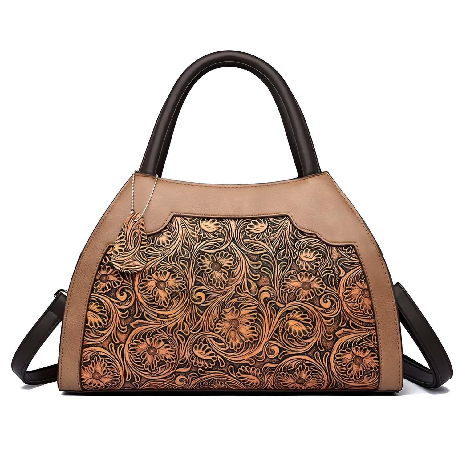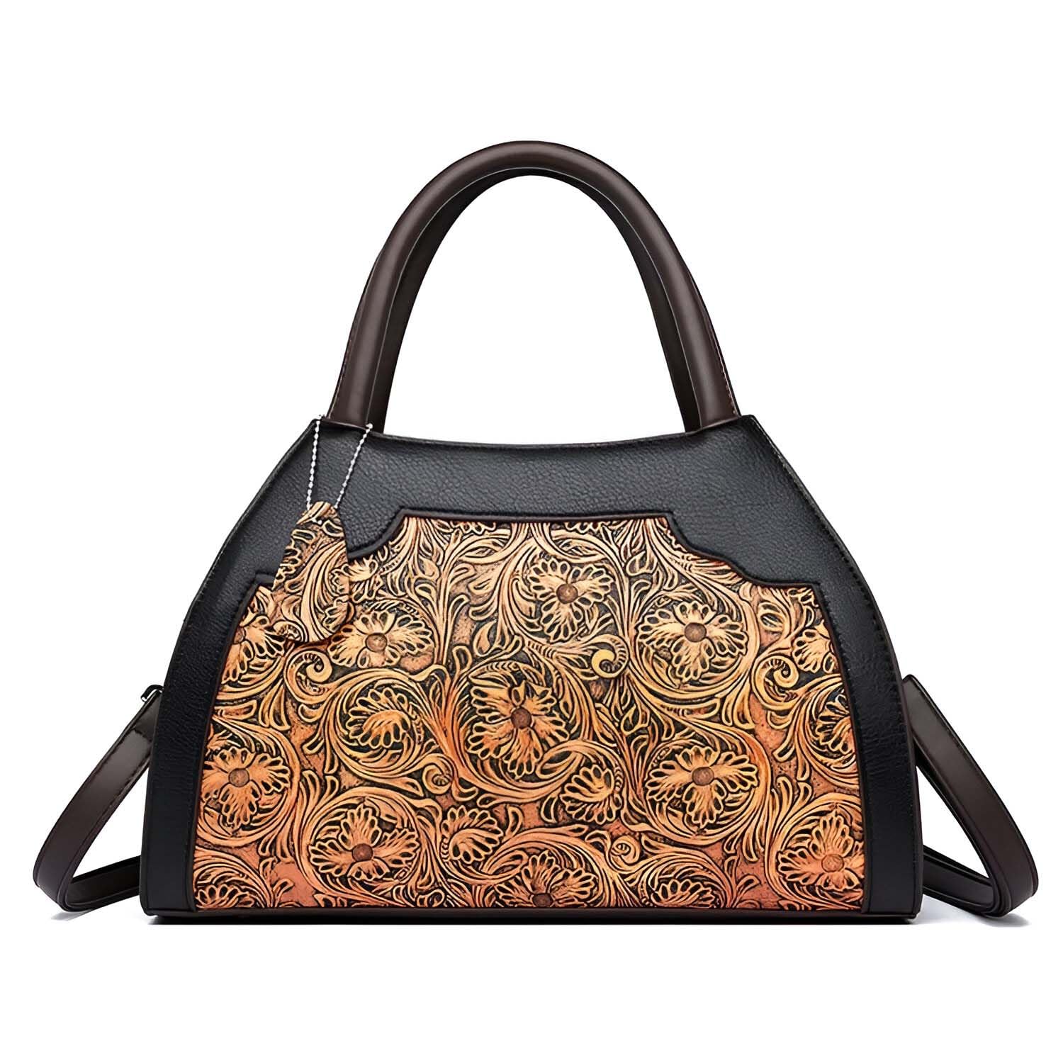 Turn heads with this beautifully designed embossed PU leather tote bag. Showcasing a classic pillow-shaped silhouette, it features artistic floral engravings that lend a vintage charm to your everyday style. With a zippered opening, secure compartments, and a comfortable shoulder strap, it's the perfect fusion of fashion and functionality. Whether you're heading out for errands, work, or a weekend brunch, this versatile tote elevates any outfit. A fashionable must-have and a fantastic gift option for women of all ages.