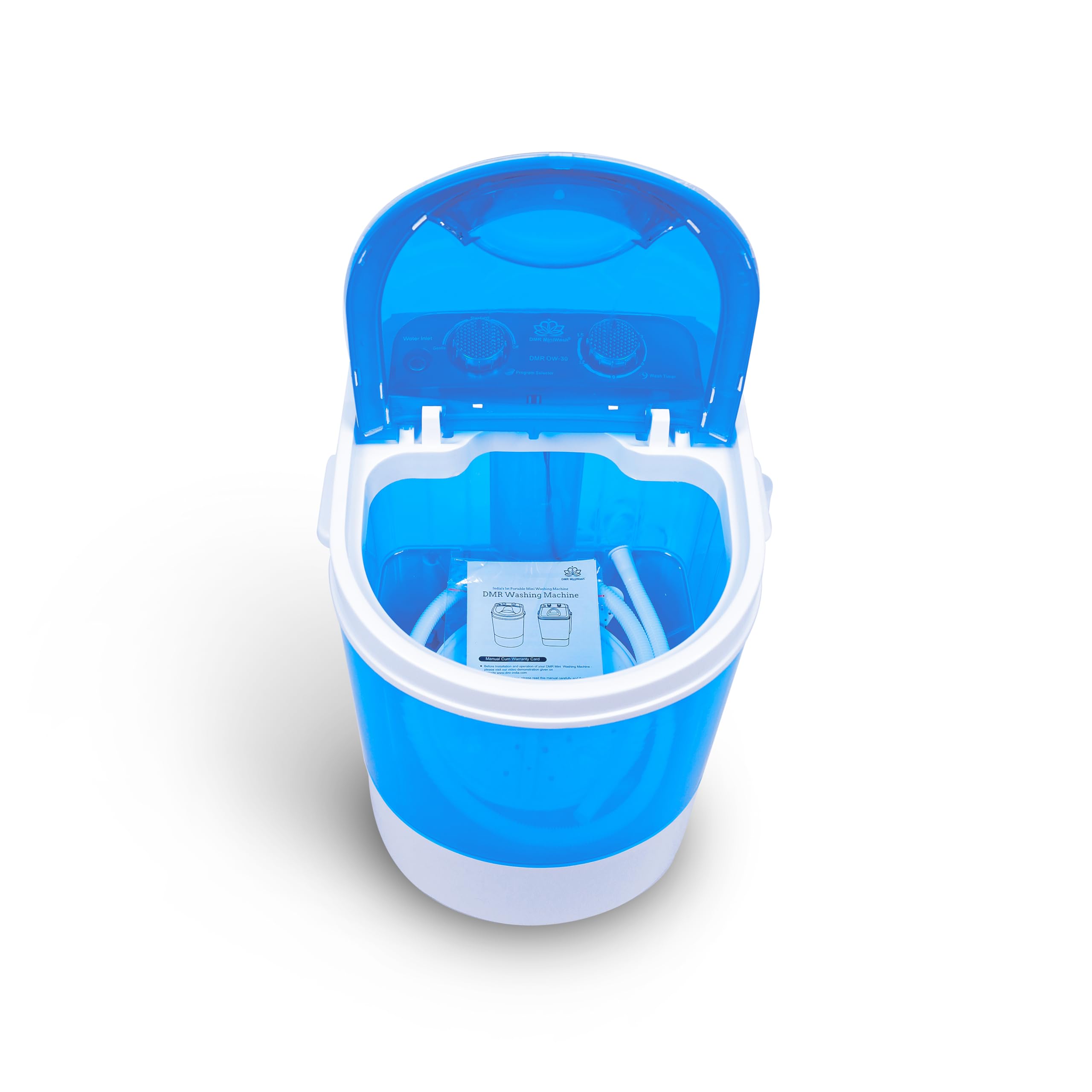Details: DMR OW-30 Portable 3 kg 2 Star single tub semi automatic washing machine - Only Washer ( No Dryer) Following are the features of this machine: Portable- light weight, small size - single tub washing machine with 3 kg Wash Capacity . Low electricity consumption and low water requirements. Wash capacity: 3 kg Spin Capacity- Not applicable, Can wash approx 5-6 cloths at a time. 1 year warranty (Free Spare Supply Warranty ), LxWxH - 40x40x56 cms gross, net weight - 7kgs, colour available- Blue. Accessories: Inlet pipe, product manual. Technical Specifications: Wash capacity - 3 kgs, Spin capacity - Not Applicable, wash time - 15 minutes, Ac Input - 220v/50hz Wash Power -240 w. knobs - 2 knobs. 1 for wash selector and other for Wash Timer, Washing cycles clock wise and anti clockwise type semi automatic washing machine.