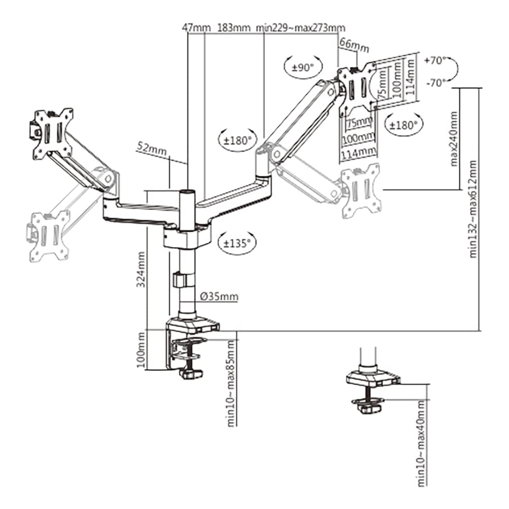 Details: SYGA Monitor StandMounting dual monitors is a great way to optimise a gaming or office setup. Get the perfect monitor position, free up desk space, and customise your setup.SYGA Twin Arm Monitor Stand is perfect for any 16”-31” TVs or monitor screens with a maximum load capacity of 10 kg for each arm. Suitable for all flat screen monitors and TVs with VESA sizes. It has tilt, swivel and height adjustment functions for optimal angle setting. Have you ever suffered from neck, shoulder after a long time working at your desk?SYGA dual monitor arm is here to provide an ergonomic solution for more efficient work!This monitor mount increase the height of your monitorsup to 42cm, which you can easily adjust to a suitable viewing height as needed. The pressure on the shoulders and neck is relieved by the correct posture. Multiple Screen SetupsEasily Switch Between Landscape to Portait Position-The dual arm setup allows you to work simultaneously on two screens, improving your productivity. Each monitor mount can be rotated independently between portrait and landscape modes for your specific needs. Once dual arms are fully extended, it provides separate working space.-By mounting both monitor screens onto the monitor stand, there will be extra space under and around the screens. It optimises the space of any traditional or standing desk by freeing up the work surface, allowing more room for files, paperwork, and more. Supports 16 to 31 Inch Monitors and TV 40X30X10CM