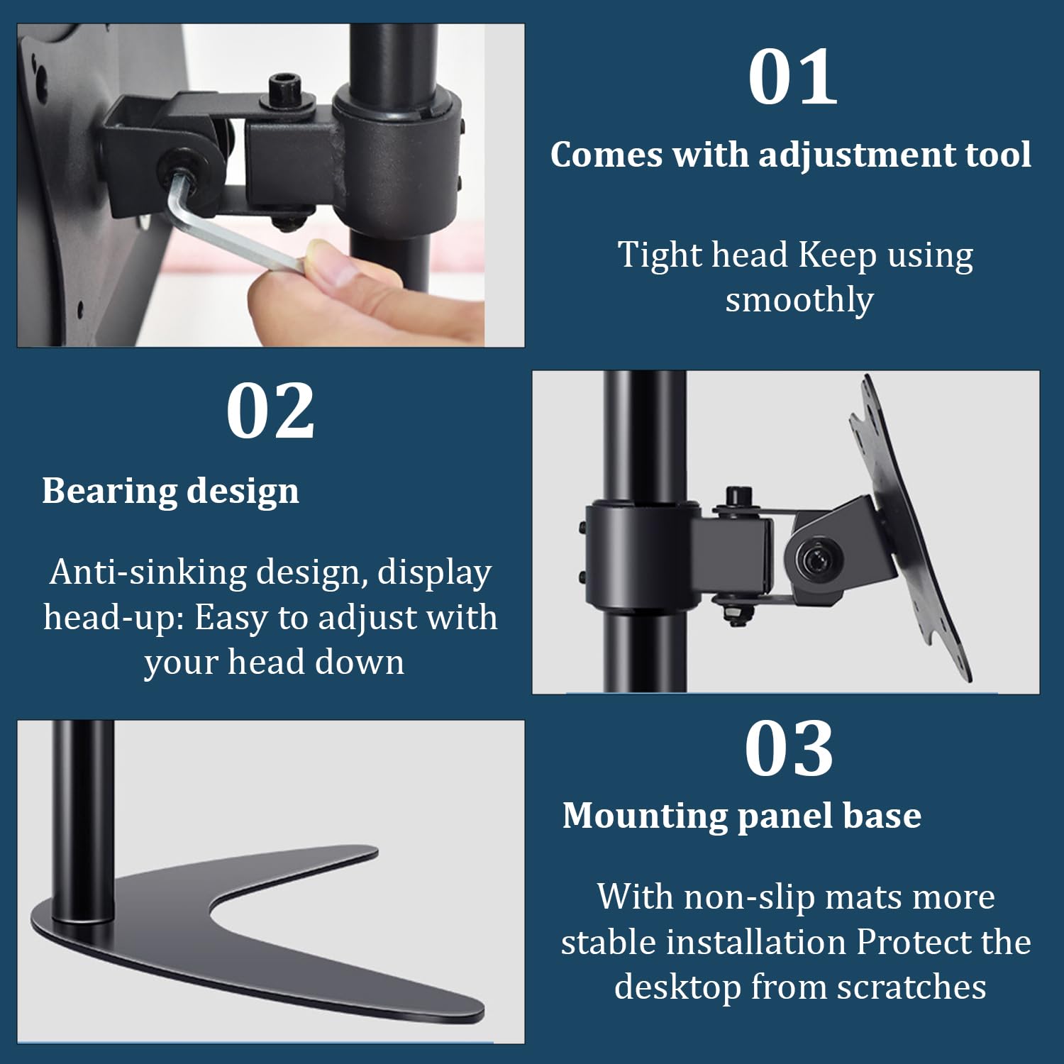 Details: SYGA Monitor Stand Mounting dual monitors is a great way to optimize a gaming or office setup. Get the perfect monitor position, free up desk space, and customize your setup. SYGA Twin Arm Monitor Stand is perfect for any 14”-27” TVs or monitor screens with a maximum load capacity of 10 kg for each arm. Suitable for all flat screen monitors and TVs with VESA sizes. It has tilt, swivel and height adjustment functions for optimal angle setting. Have you ever suffered from neck, shoulder after a long time working at your desk? SYGA dual monitor arm is here to provide an ergonomic solution for more efficient work! This monitor mount increase the height of your monitor sup to 42cm, which you can easily adjust to a suitable viewing height as needed. The pressure on the shoulders and neck is relieved by the correct posture. Multiple Screen Setups Easily Switch Between Landscape to Portrait Position -The dual arm setup allows you to work simultaneously on two screens, improving your productivity. Each monitor mount can be rotated independently between portrait and landscape modes for your specific needs. Once dual arms are fully extended, it provides separate working space. -By mounting both monitor screens onto the monitor stand, there will be extra space under and around the screens. It optimizes the space of any traditional or standing desk by freeing up the work surface, allowing more room for files, paperwork, and more. Supports 14 to 27 Inch Monitors and TV 75X75, 100X100MM