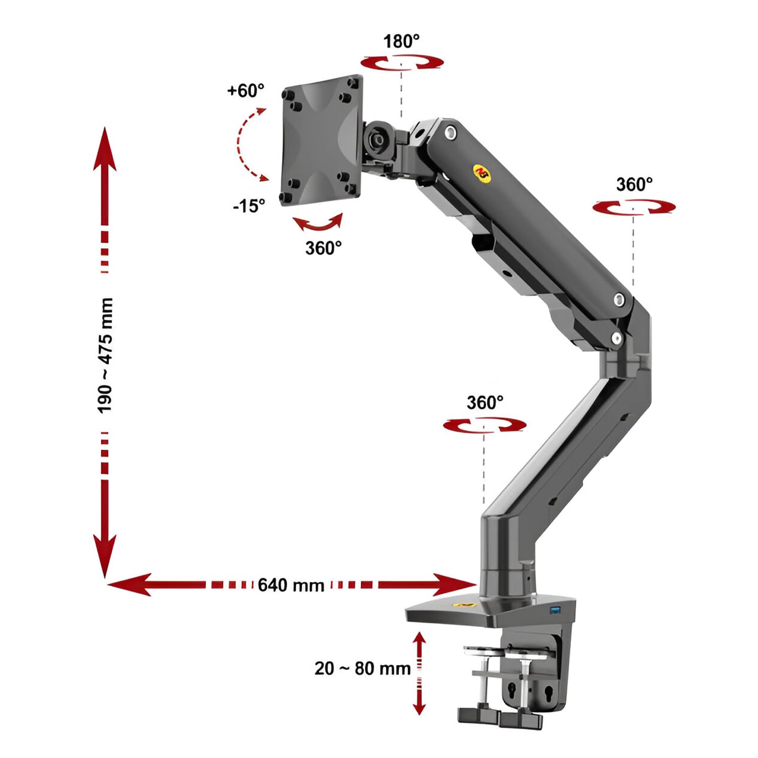 Details: Transform your workspace with this premium heavy-duty monitor mount designed for screens ranging from 27 to 45 inches. The G50 features a robust gas spring arm mechanism that effortlessly supports displays weighing between 5 to 16 kg, providing smooth and stable positioning. This versatile mount offers exceptional flexibility with its multi-function adjustments, allowing you to optimise your screen's height, tilt, and orientation. The sleek black finish complements any desk setup, while the sturdy clamp ensures secure installation. Perfect for professionals seeking to enhance their ergonomic workspace, this mount helps free up valuable desk space and achieve the ideal viewing angle. The gas spring technology enables effortless screen adjustments with just a light touch, making it ideal for shared workspaces or environments requiring frequent monitor position changes. Installation is straightforward with included hardware, and the cable management system keeps your workspace tidy and professional.